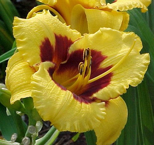 Лилейник Блэкберри Кэнди (Blackberry Candy) – это изысканное украшение для вашего сада, которое привнесет в него яркие краски и элегантность. Этот сорт лилейника отличается крупными цветками с уникальной окраской: нежно-желтые лепестки с насыщенным бордовым центром создают эффектный контраст, привлекая внимание и восхищение.